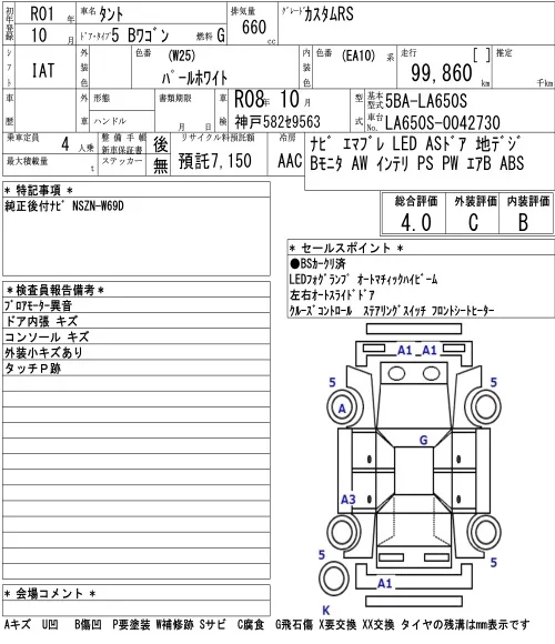Daihatsu TANTO с аукциона Японии NAA Osaka лот № 3005