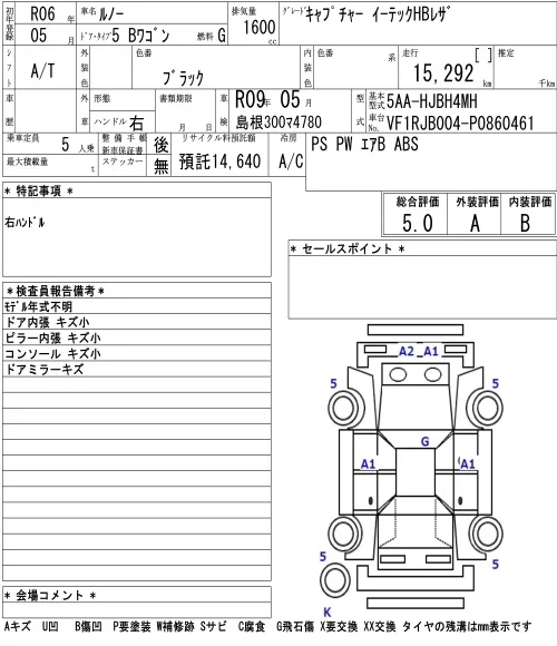 Renault Captur с аукциона Японии NAA Osaka лот № 1014