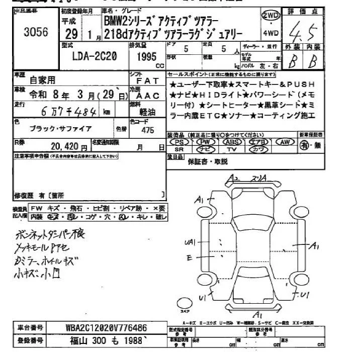 BMW 2-Series с аукциона Японии JU Hiroshima лот № 3056