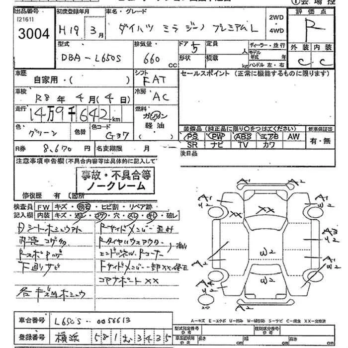 Daihatsu MIRA с аукциона Японии JU Kanagawa лот № 3004