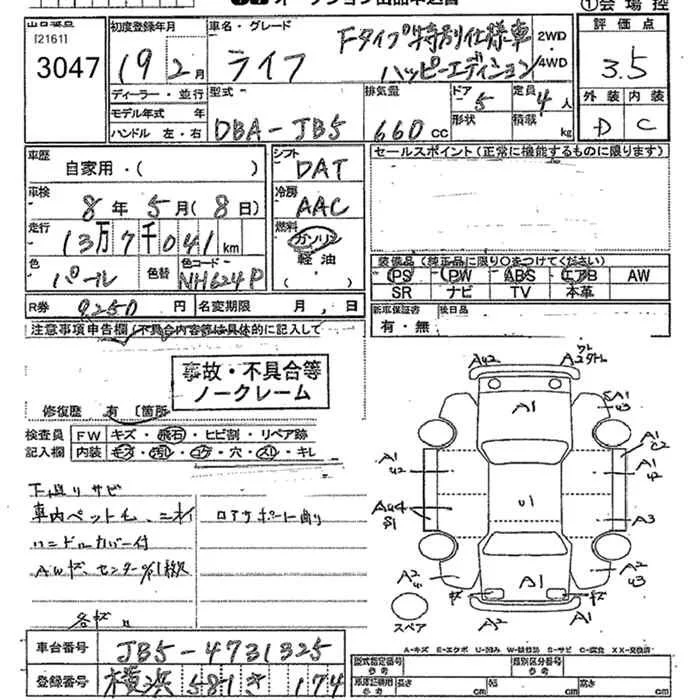 Honda LIFE с аукциона Японии JU Kanagawa лот № 3047