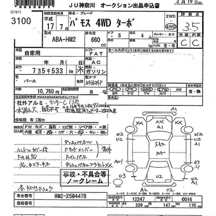 Honda VAMOS с аукциона Японии JU Kanagawa лот № 3100