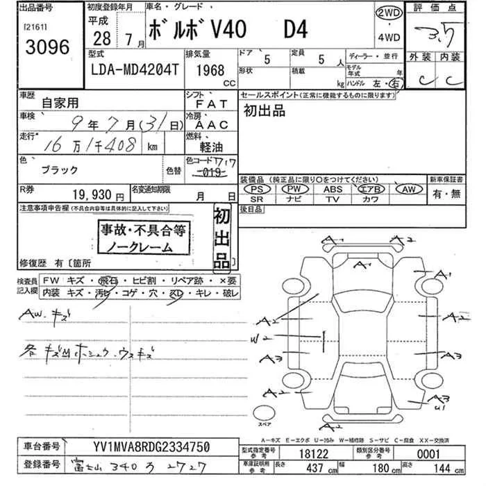 Volvo V40 с аукциона Японии JU Kanagawa лот № 3096