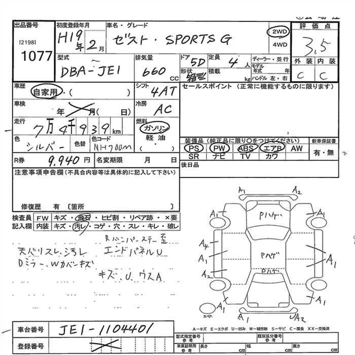 Honda ZEST с аукциона Японии JU Gunma лот № 1077