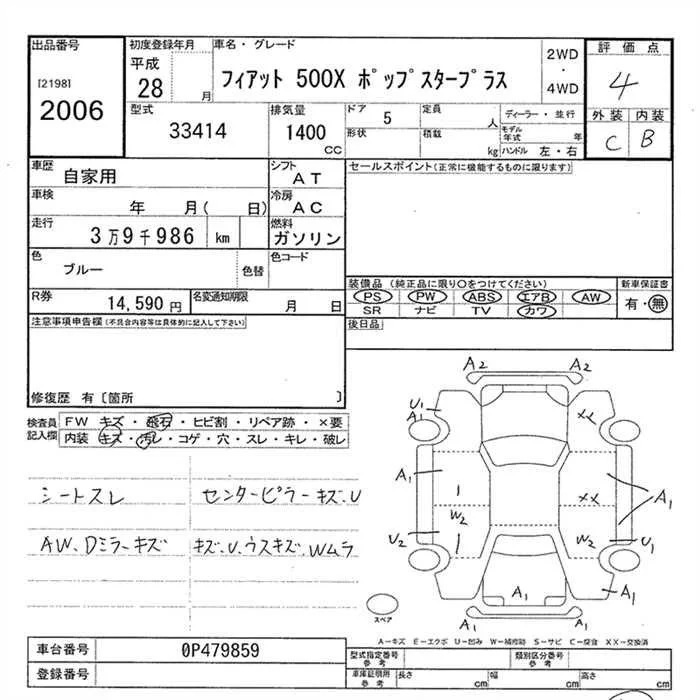 Fiat 500X с аукциона Японии JU Gunma лот № 2006