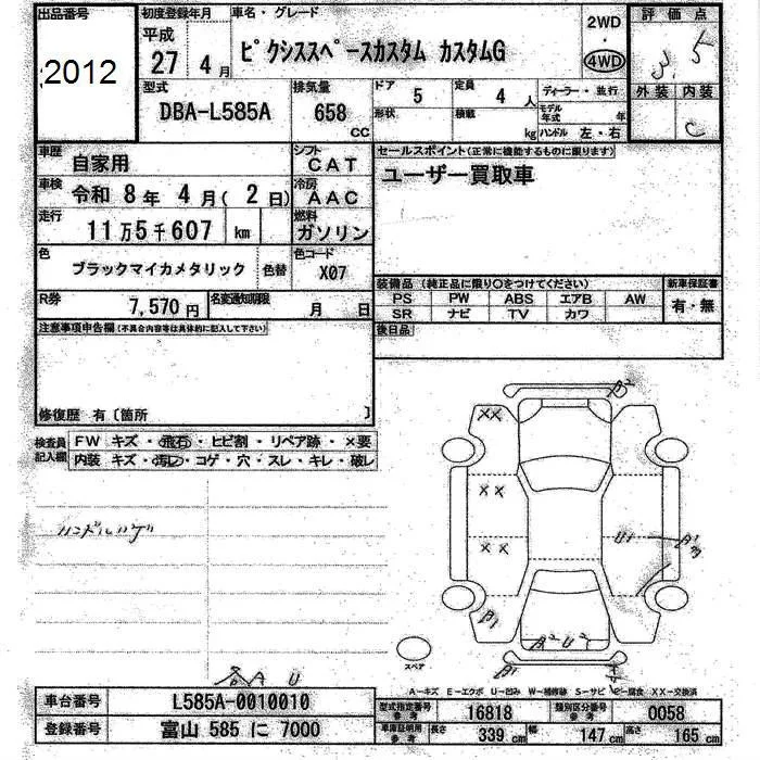 Toyota PIXIS SPACE с аукциона Японии JU Toyama лот № 2012