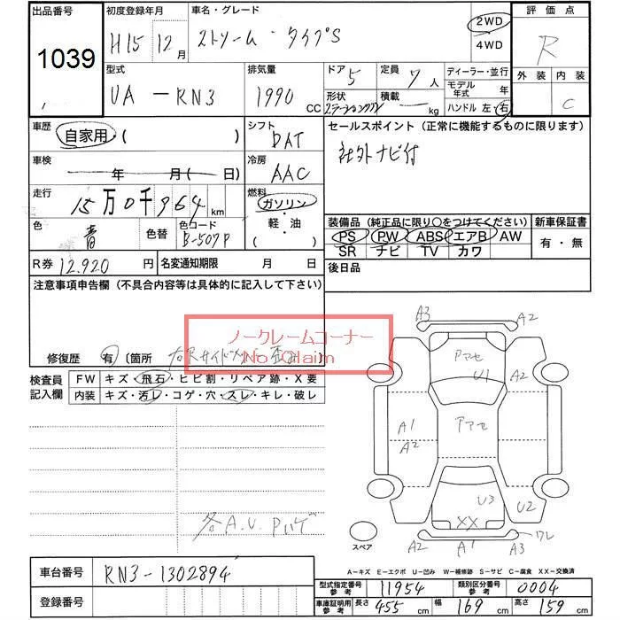 Honda STREAM с аукциона Японии JU Toyama лот № 1039