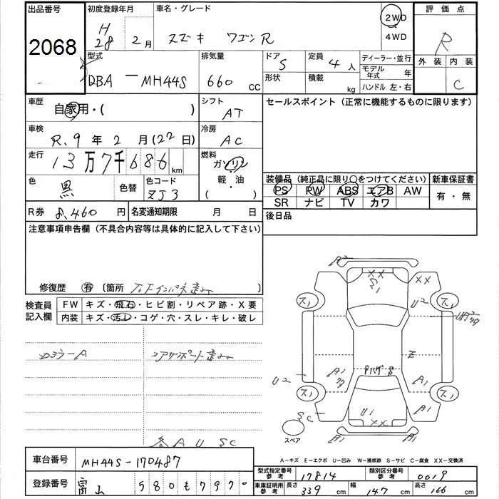 Suzuki WAGON R с аукциона Японии JU Toyama лот № 2068