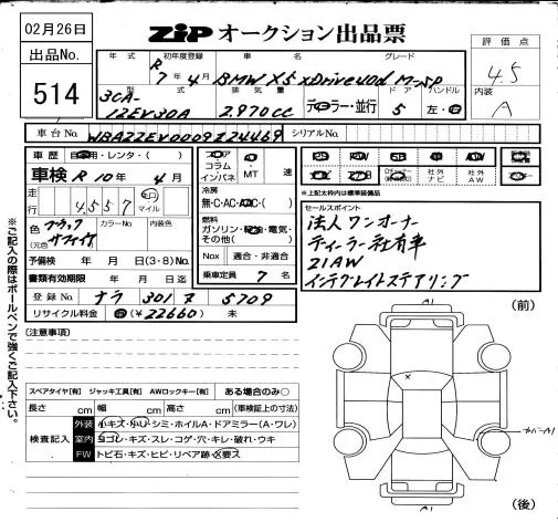 BMW X5 SERIES с аукциона Японии ZIP Osaka лот № 514