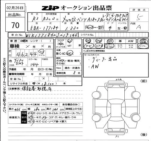 Mercedes-Benz A CLASS с аукциона Японии ZIP Osaka лот № 70