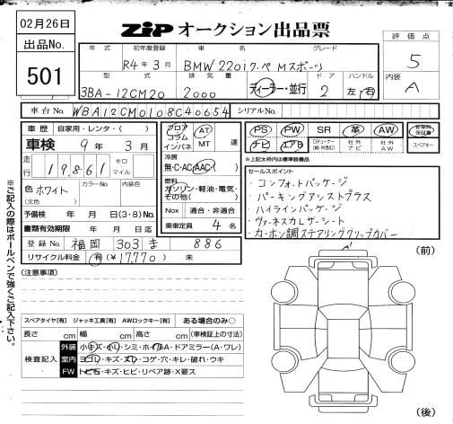 BMW 2-Series с аукциона Японии ZIP Osaka лот № 501
