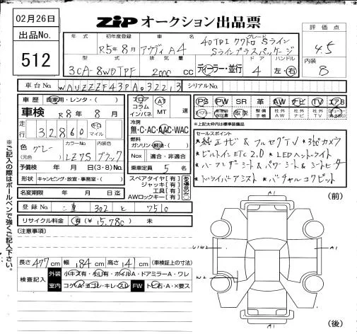 Audi A4 с аукциона Японии ZIP Osaka лот № 512