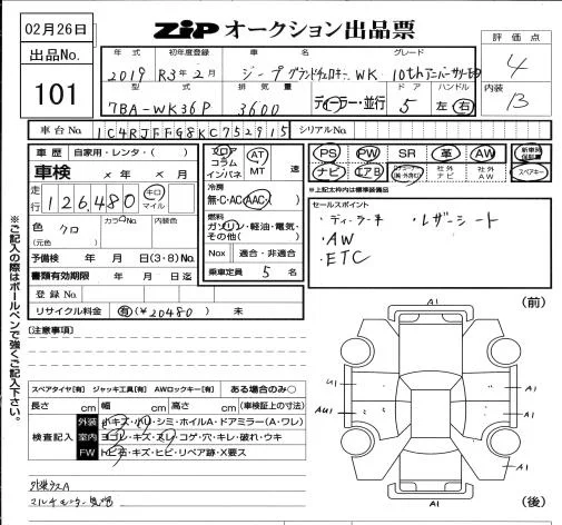 Chrysler JEEP GRAND CHEROKEE с аукциона Японии ZIP Osaka лот № 101