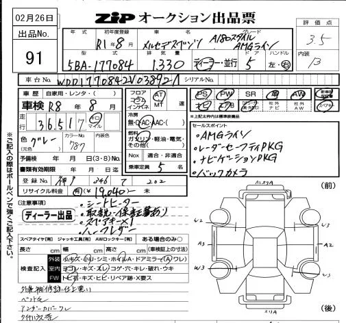 Mercedes-Benz A CLASS с аукциона Японии ZIP Osaka лот № 91