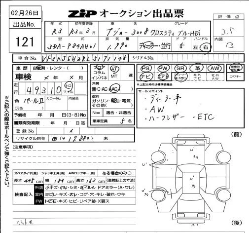 Peugeot 3008 с аукциона Японии ZIP Osaka лот № 121