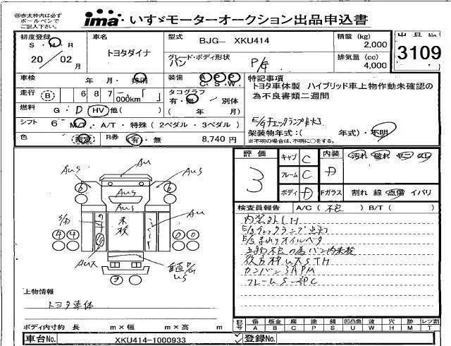 Toyota DYNA с аукциона Японии Isuzu Kyushu лот № 3109