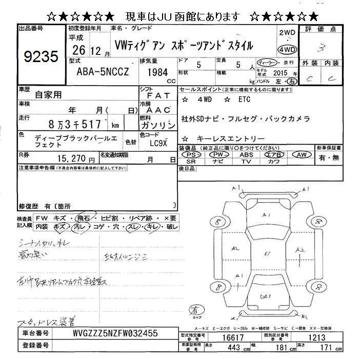 Volkswagen TIGUAN с аукциона Японии JU Hokkaido лот № 9235
