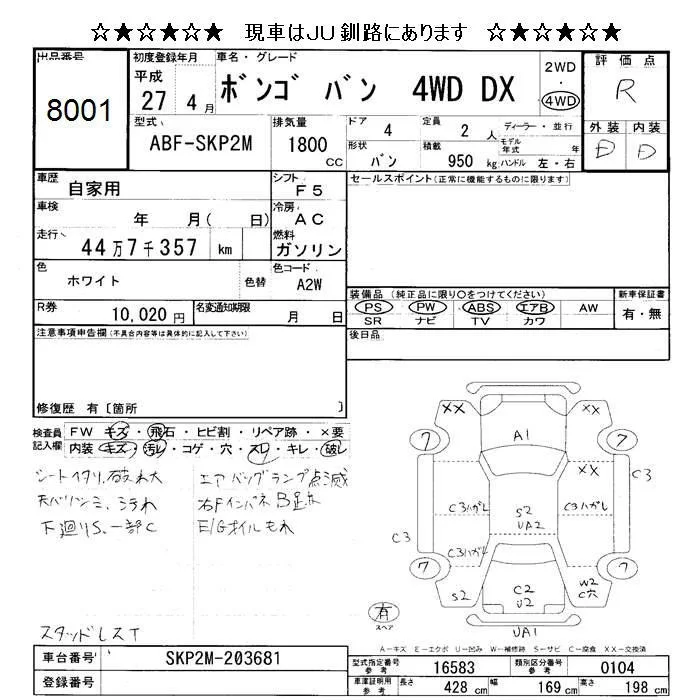 Mazda BONGO VAN с аукциона Японии JU Hokkaido лот № 8001