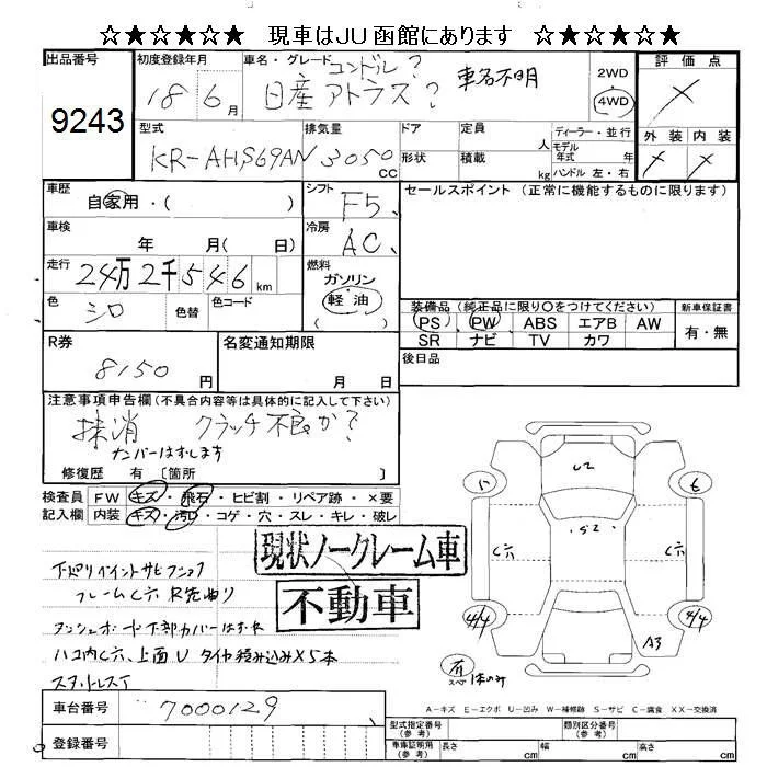 Nissan TRUCK с аукциона Японии JU Hokkaido лот № 9243
