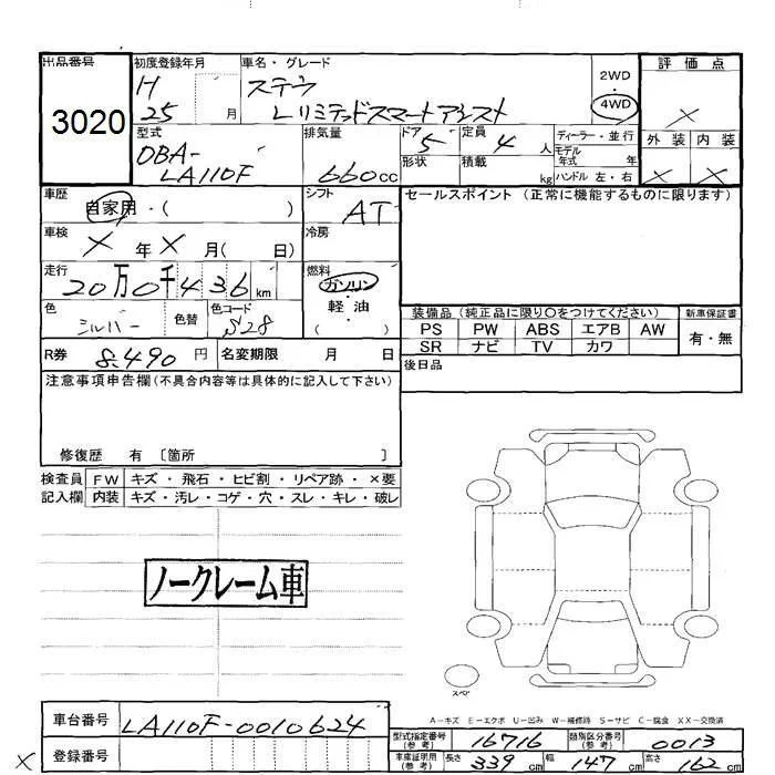 Subaru STELLA с аукциона Японии JU Hokkaido лот № 3020