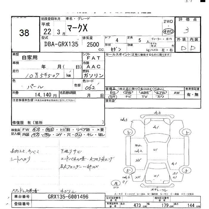 Toyota MARK X с аукциона Японии JU Hokkaido лот № 38