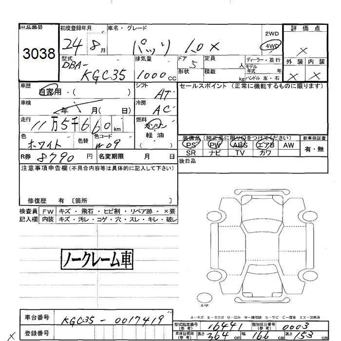 Toyota PASSO с аукциона Японии JU Hokkaido лот № 3038