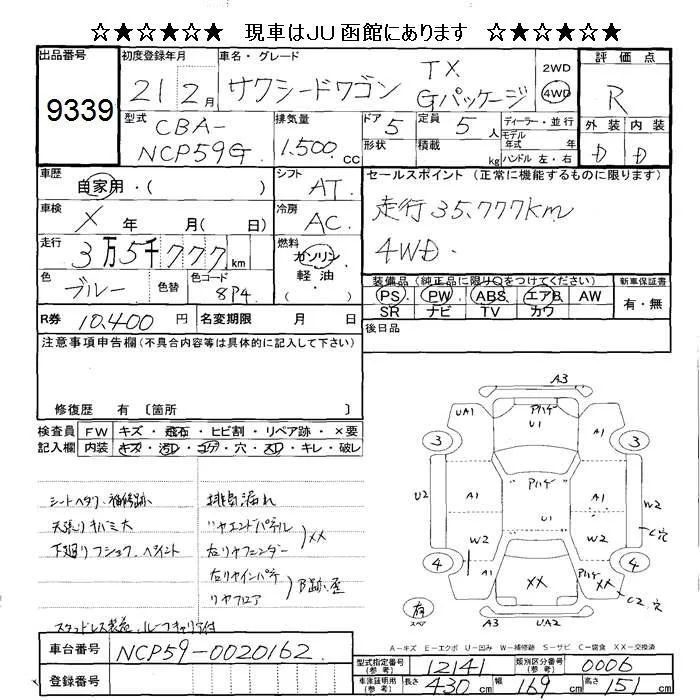 Toyota SUCCEED с аукциона Японии JU Hokkaido лот № 9339