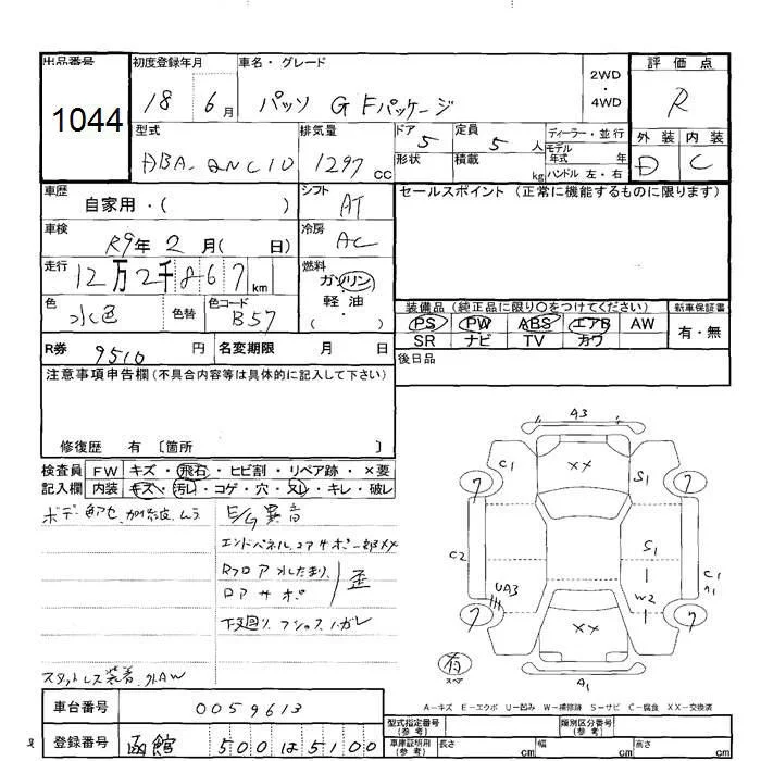 Toyota PASSO с аукциона Японии JU Hokkaido лот № 1044