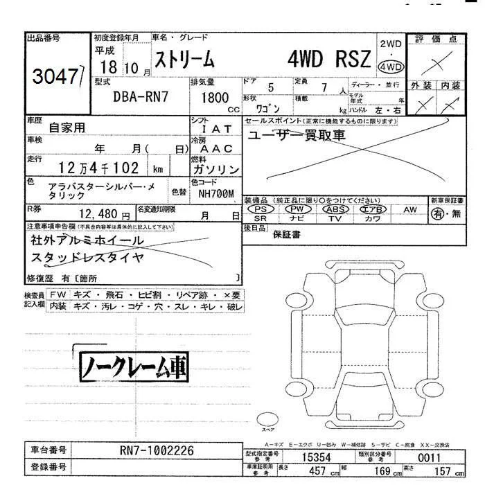 Honda STREAM с аукциона Японии JU Hokkaido лот № 3047