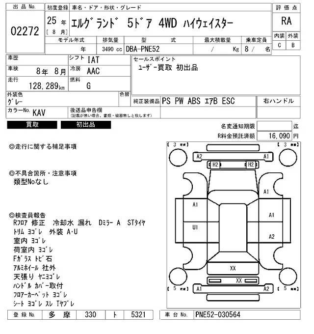 Nissan ELGRAND с аукциона Японии ARAI Bayside лот № 2272