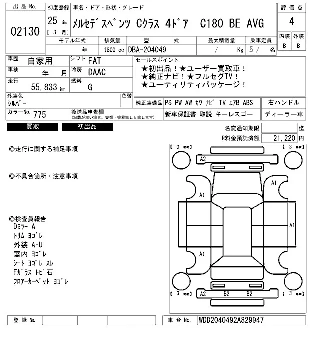 Mercedes-Benz C CLASS с аукциона Японии ARAI Bayside лот № 2130