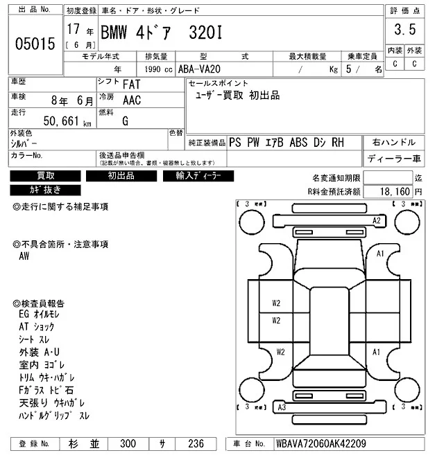BMW 3-Series с аукциона Японии ARAI Bayside лот № 5015