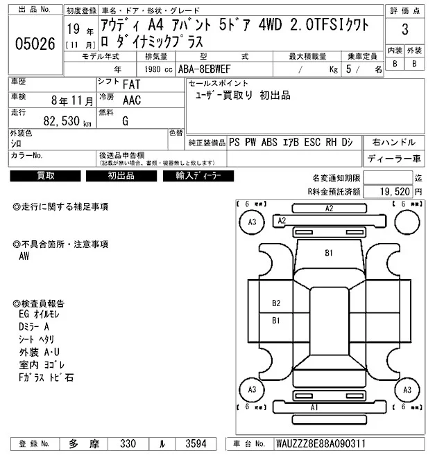 Audi A4 с аукциона Японии ARAI Bayside лот № 5026