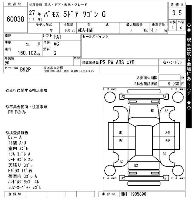 Honda VAMOS с аукциона Японии ARAI Bayside лот № 60038