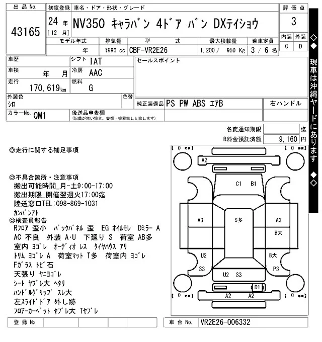 Nissan CARAVAN VAN с аукциона Японии ARAI Bayside лот № 43165