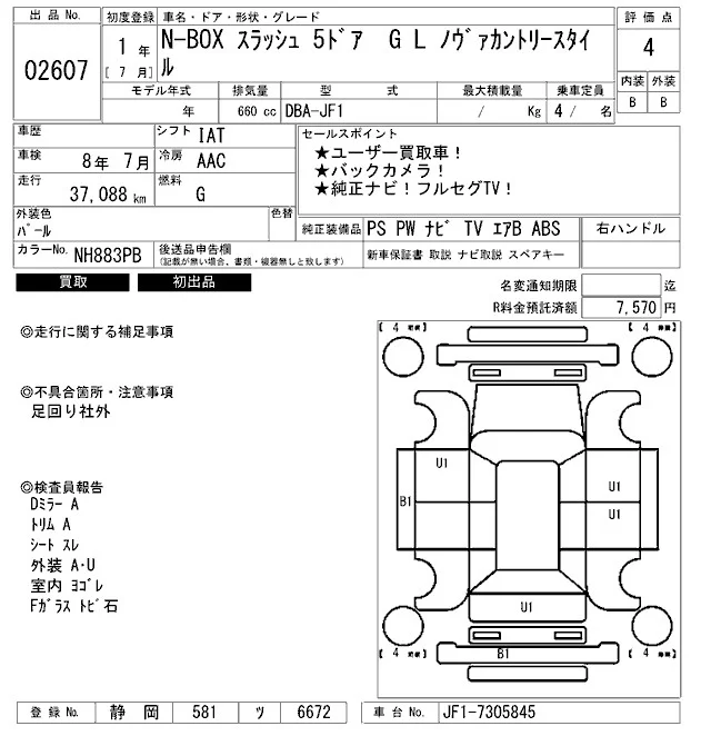 Honda N BOX SLASH с аукциона Японии ARAI Bayside лот № 2607