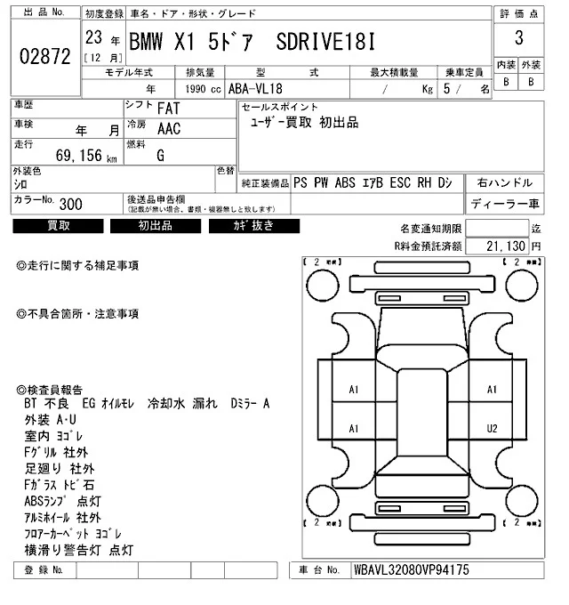 BMW X1 с аукциона Японии ARAI Bayside лот № 2872