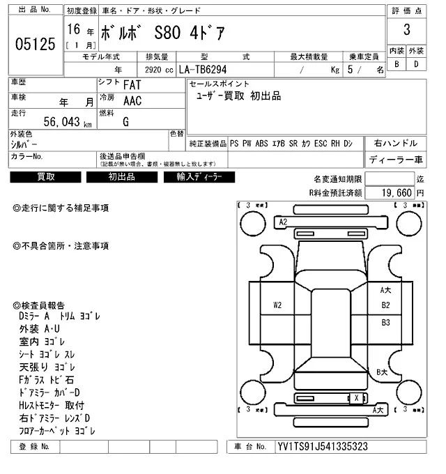 Volvo S80 с аукциона Японии ARAI Bayside лот № 5125