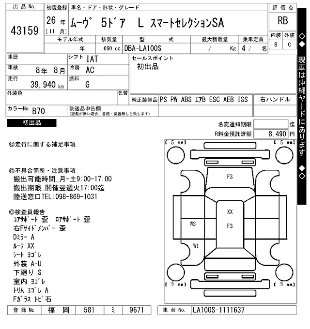 Daihatsu MOVE с аукциона Японии ARAI Bayside лот № 43159