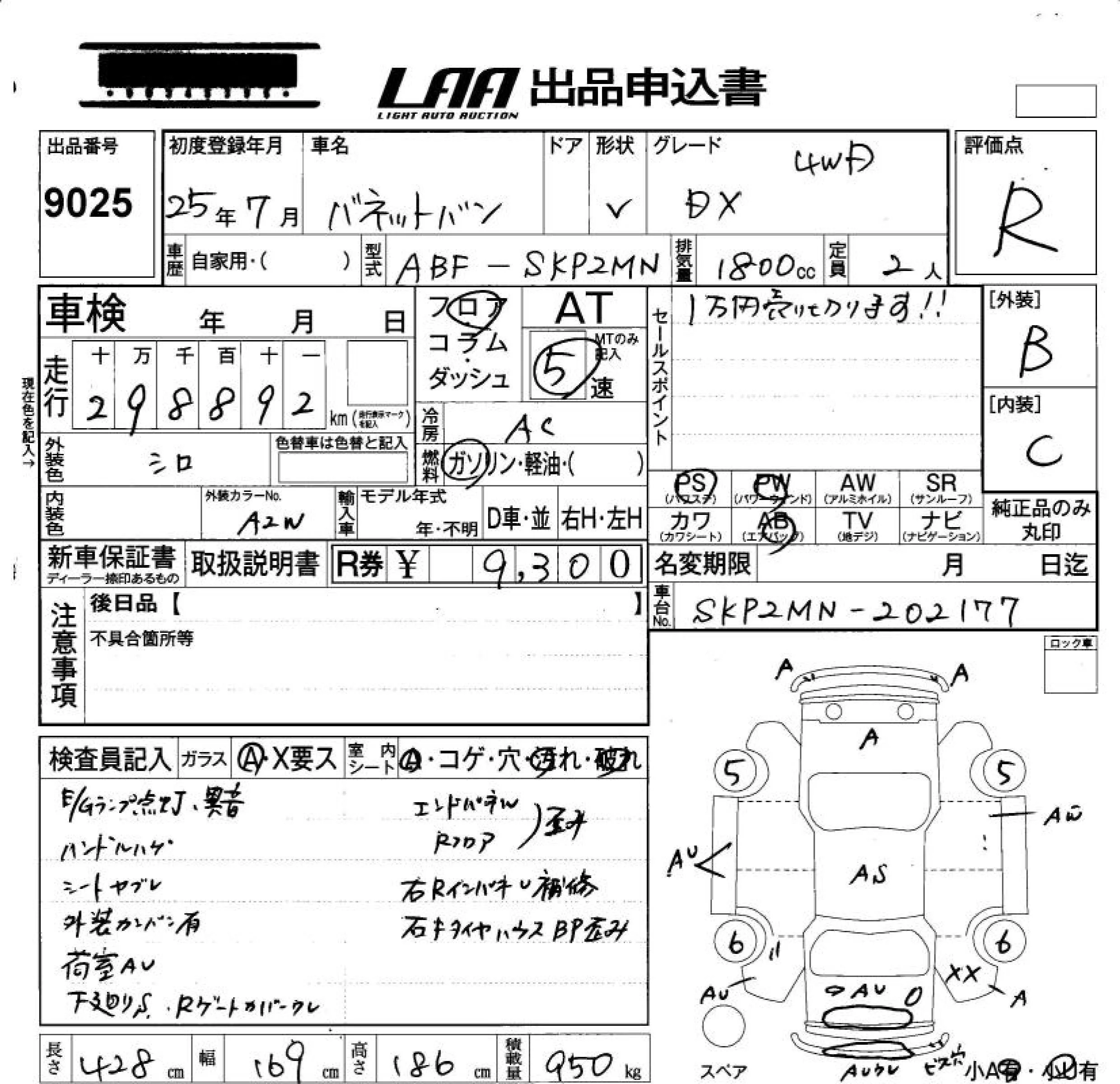 Nissan VANETTE VAN с аукциона Японии LAA Okayama лот № 9025