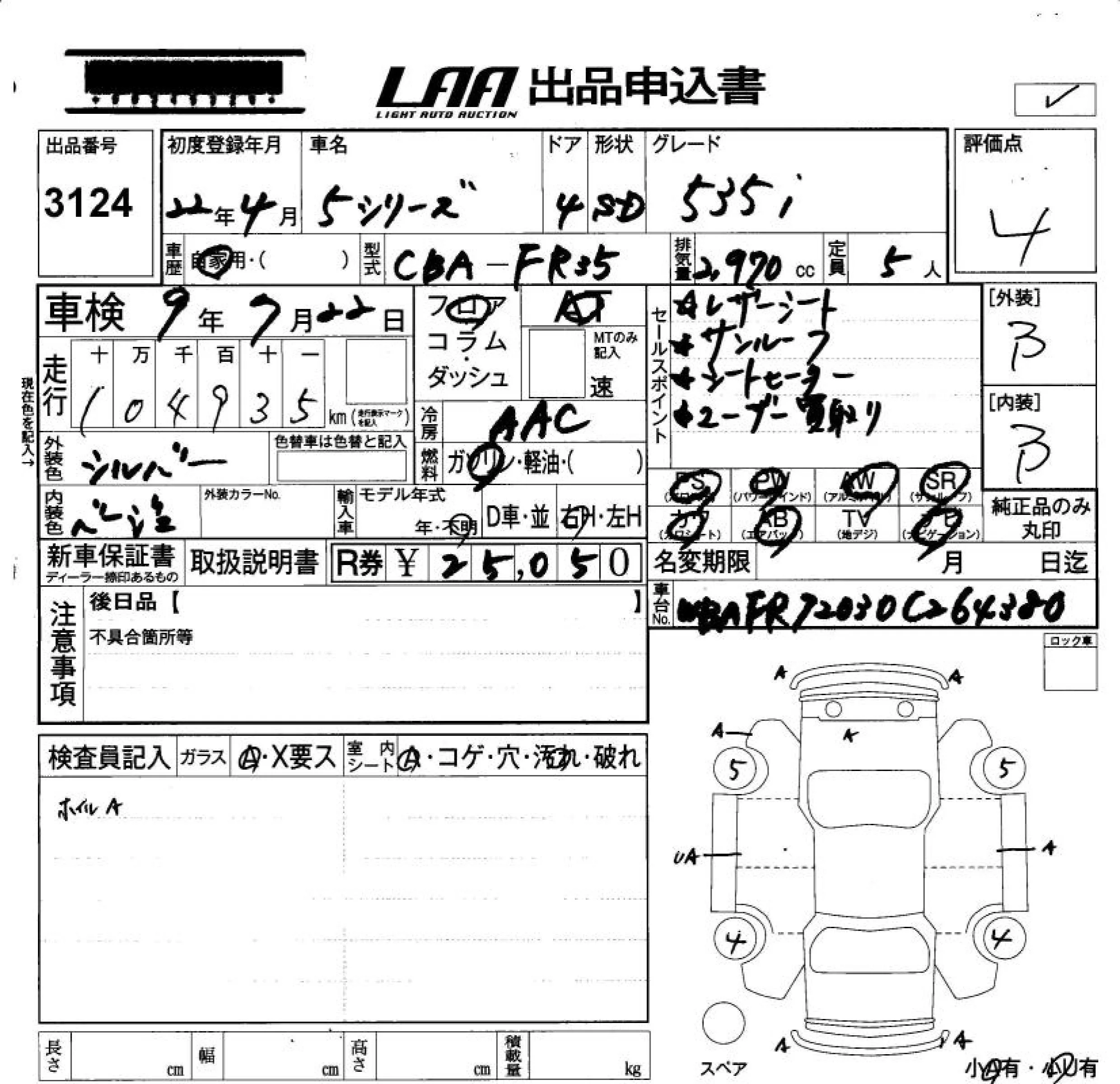 BMW 5-Series с аукциона Японии LAA Okayama лот № 3124