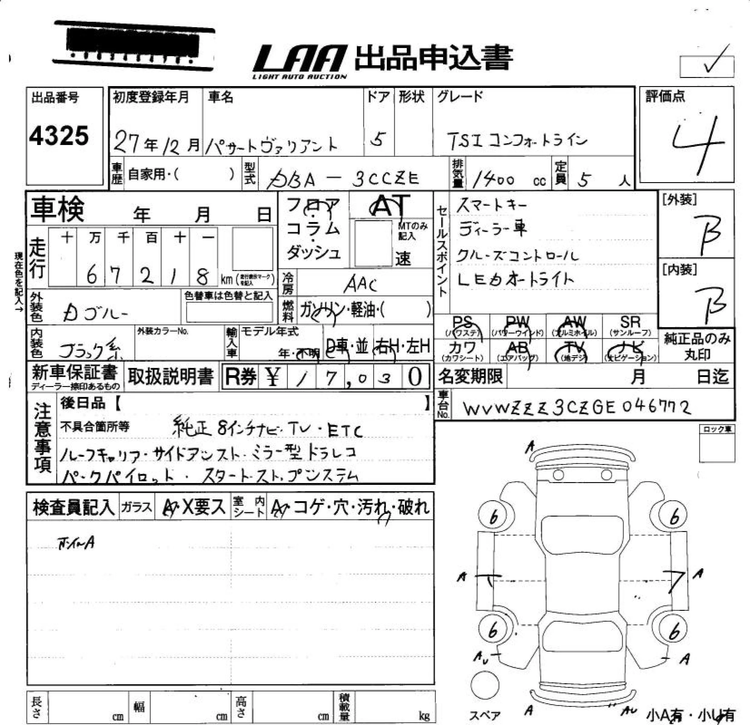Volkswagen PASSAT VARIANT с аукциона Японии LAA Okayama лот № 4325