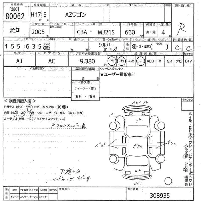 Mazda AZ WAGON с аукциона Японии MIRIVE Aichi лот № 80062