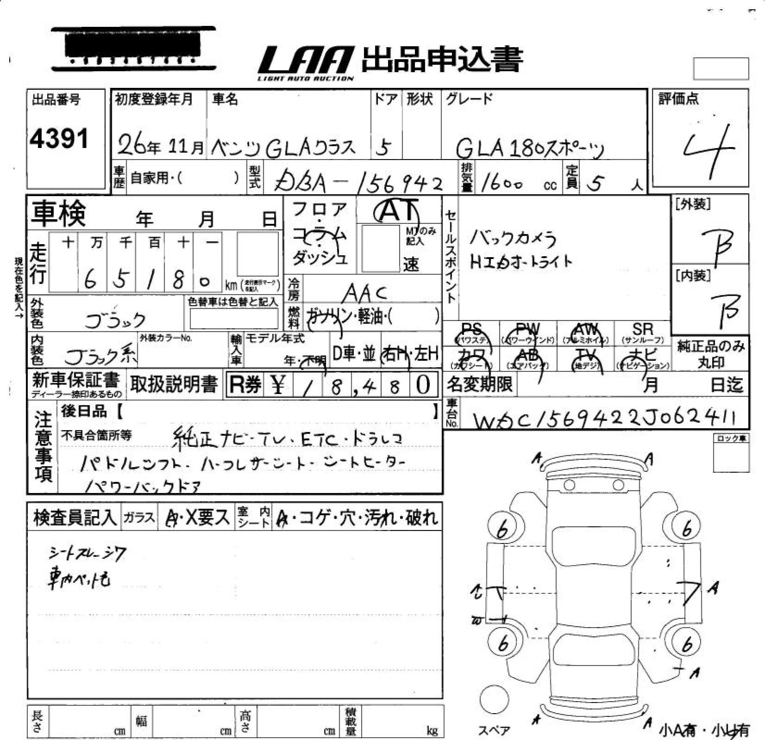 Mercedes-Benz GLA CLASS с аукциона Японии LAA Okayama лот № 4391