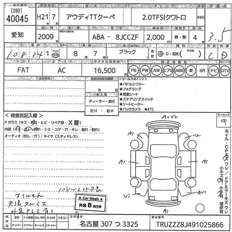Audi TT с аукциона Японии MIRIVE Aichi лот № 40045
