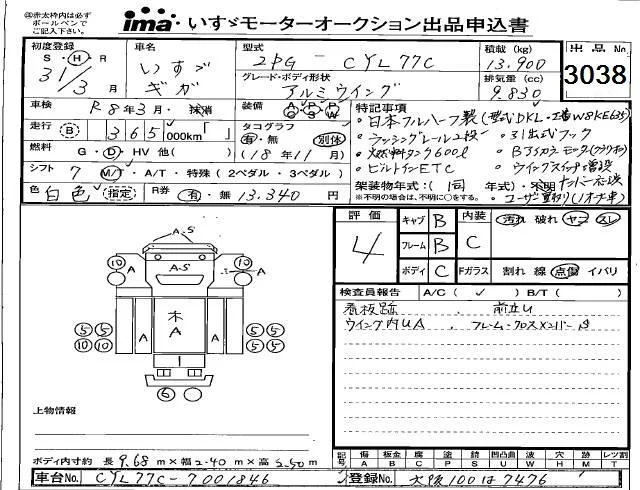 Аукционный лист  TRUCK лот № 3038