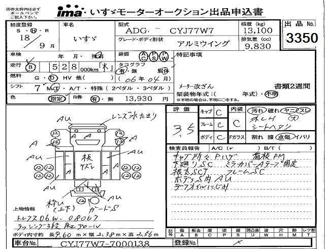 Isuzu TRUCK с аукциона Японии Isuzu Kobe лот № 3350