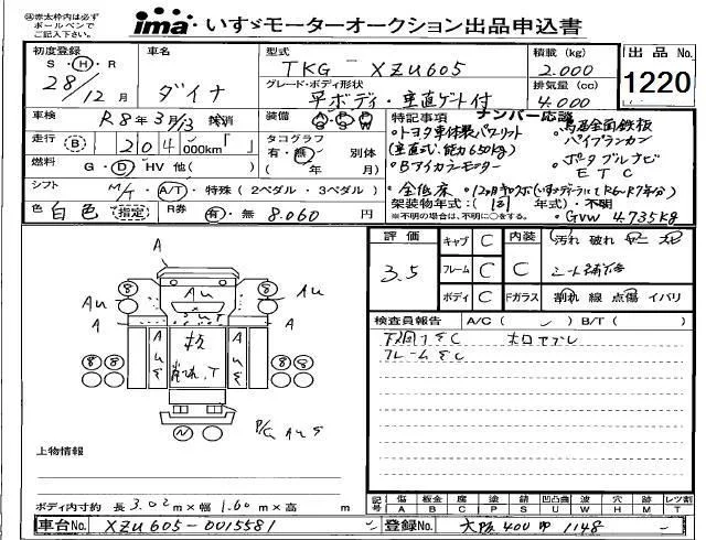 Toyota DYNA с аукциона Японии Isuzu Kobe лот № 1220