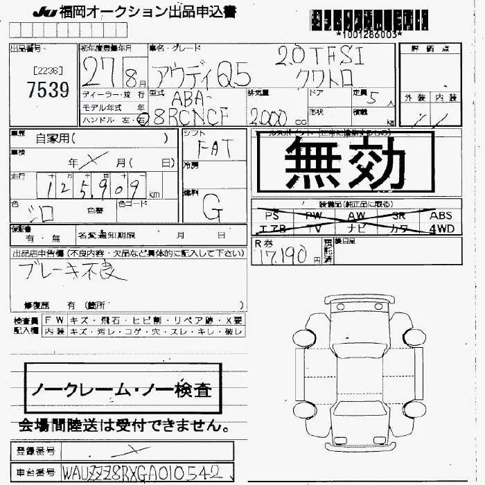 Audi Q5 с аукциона Японии JU Fukuoka лот № 7539