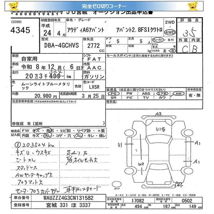 Audi A6 с аукциона Японии JU Miyagi лот № 4345